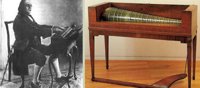 Als Erfinder der Glasharmonika gilt allgemein Benjamin Franklin. Der amerikanische Diplomat, Naturwissenschafter, Erfinder (u. A. des Blitzableiters 1752) und Mitglied der St. John’s Freimaurerloge hörte anlässlich eines London-aufenthaltes ein Präsentationskonzert von Edmund Delaval auf den Musical Glasses, einem Vorläuferinstrument der Glasharmonika. Dieses Erlebnis regte ihn zur Erfindung der Glasharmonika an.